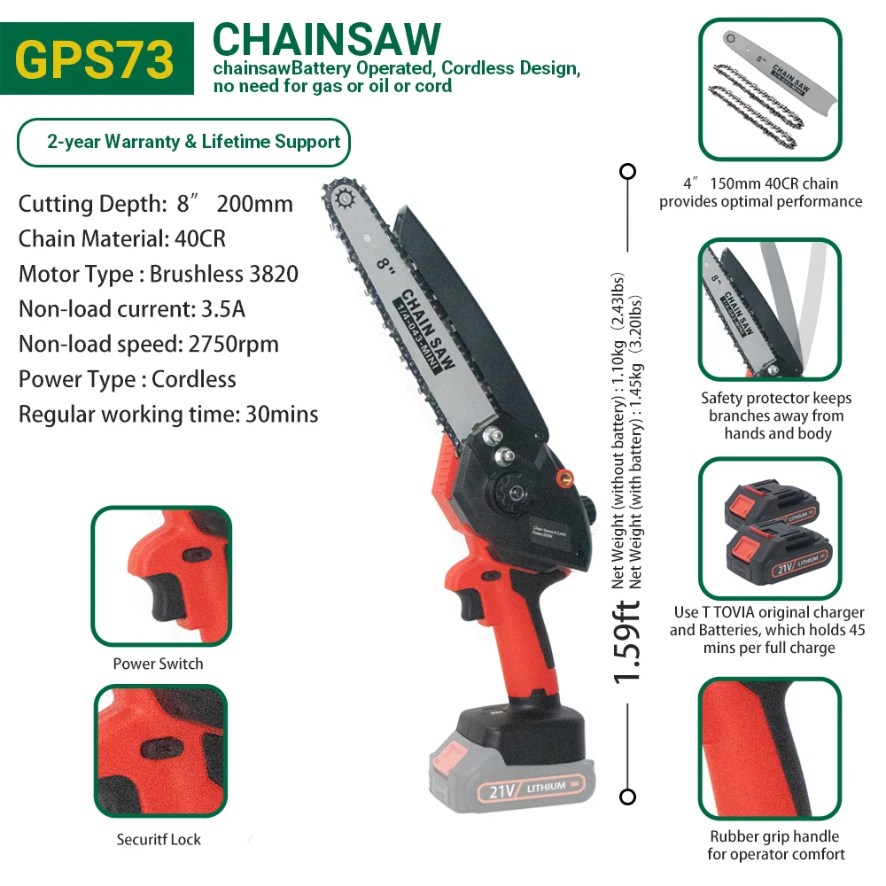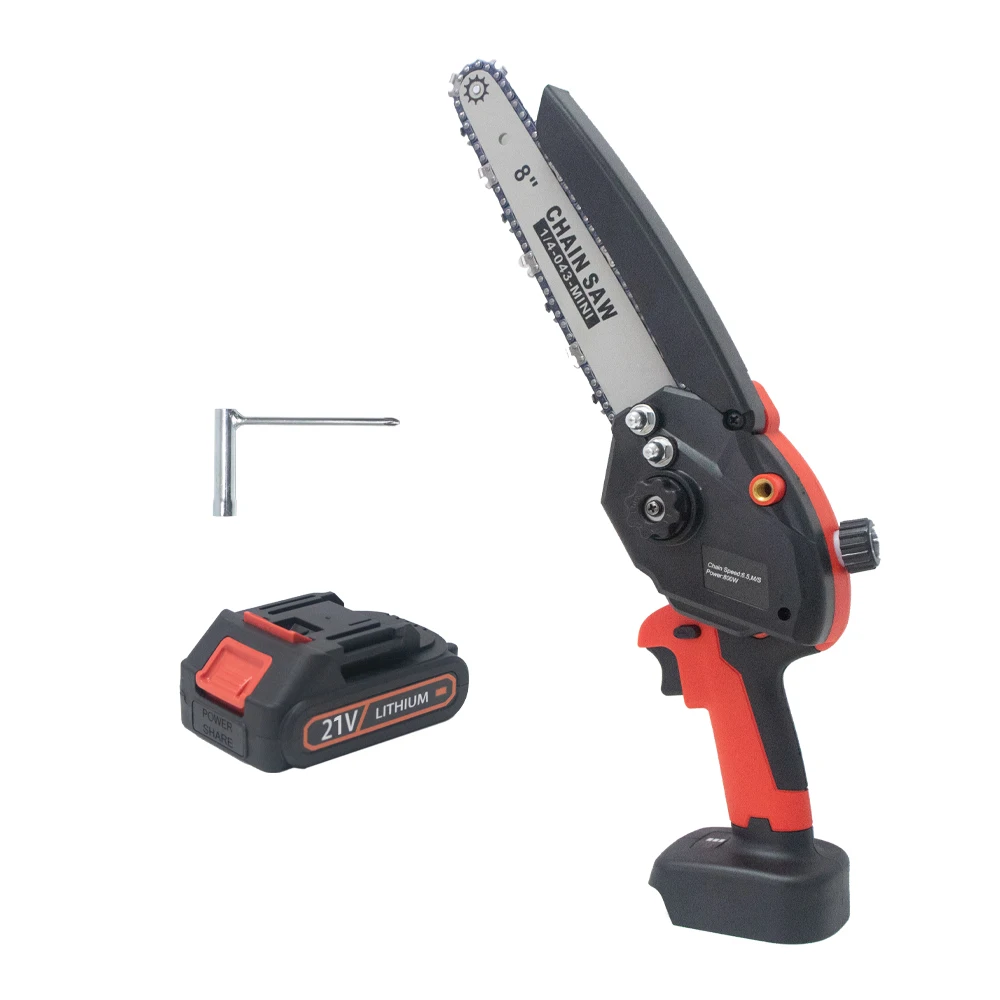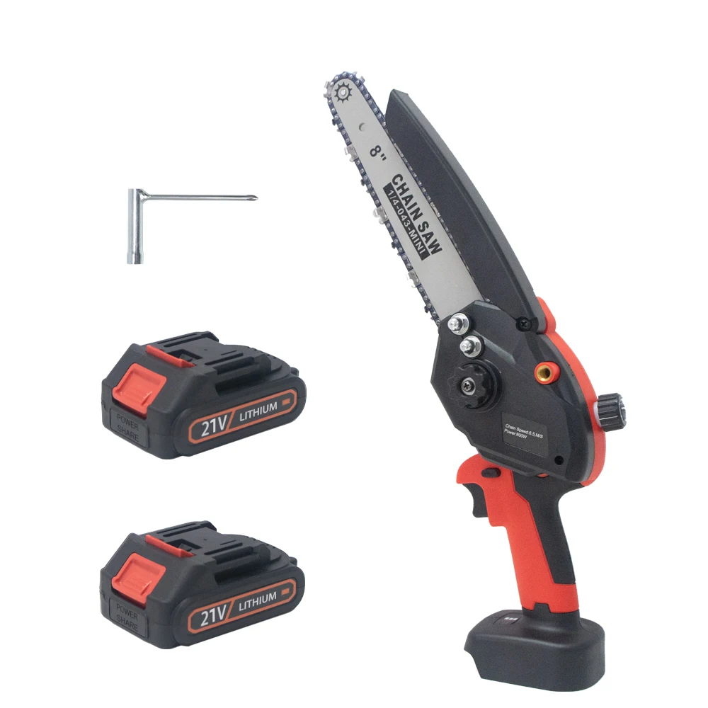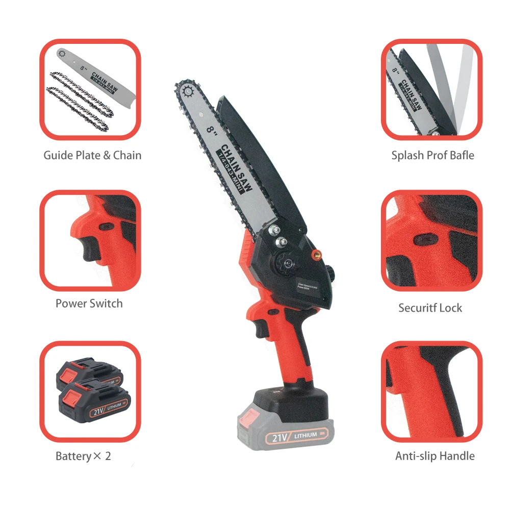 T TOVIA 8 inch 21V Cordless Mini ChainSaw Mini Electric Portable Pruning ChainSaw for Wood Cutting Garden Trimming